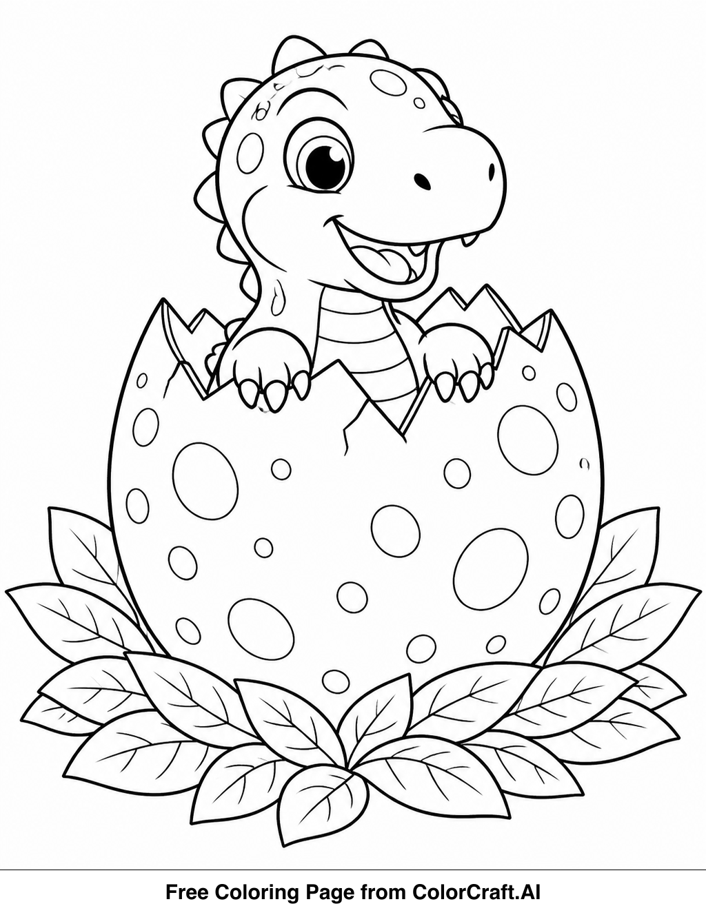 Welcome to our collection of free printables! Get ready to print and color this adorable baby dinosaur hatching from its egg. It's a wonderful way to relax and let your creativity flow.