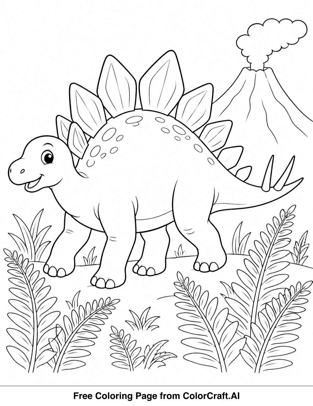 Welcome to ColorCraft! Get ready to print and color this fun Stegosaurus scene. It's a wonderful way to relax and let your creativity flow.