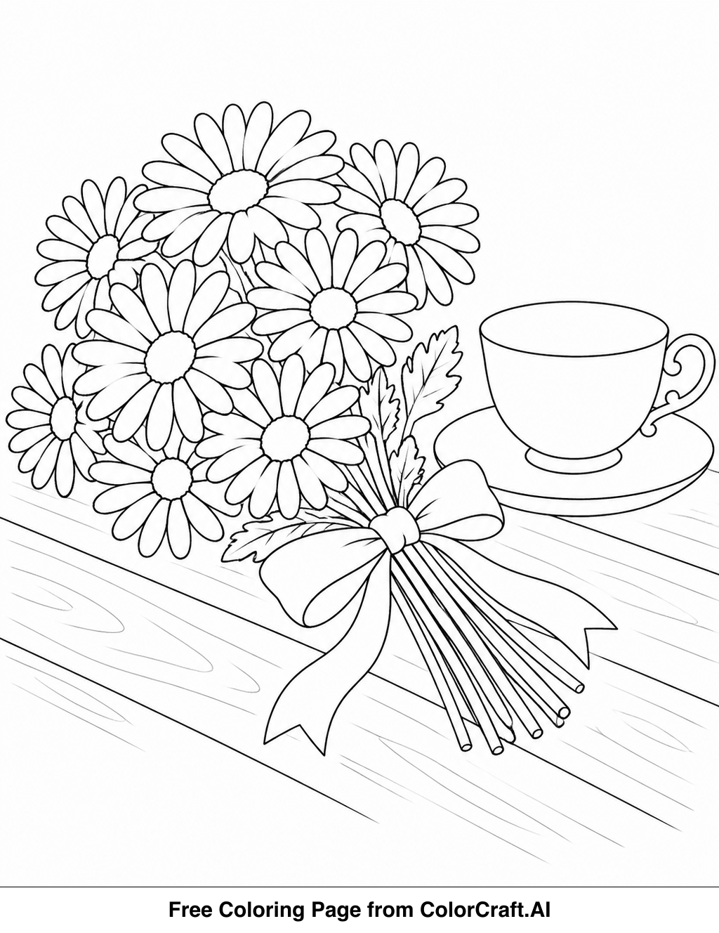 Welcome to ColorCraft! Get ready to print and color this lovely daisies and teacup scene. It's the perfect way to relax and unleash your creativity.