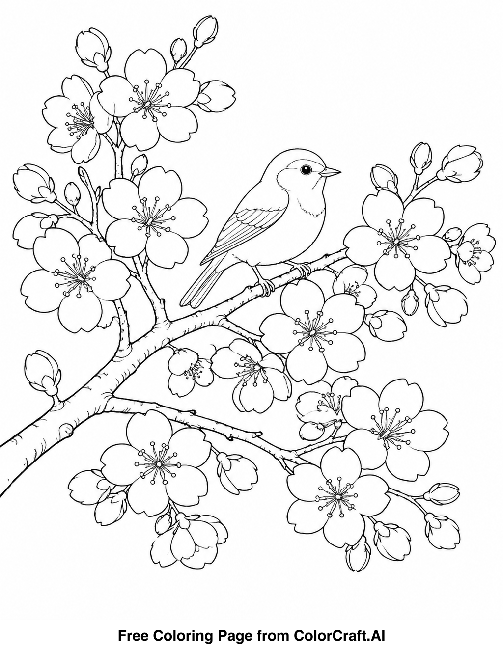 Welcome to ColorCraft! Get ready to print and color this beautiful cherry blossom branch. It's a wonderful way to relax and unwind.