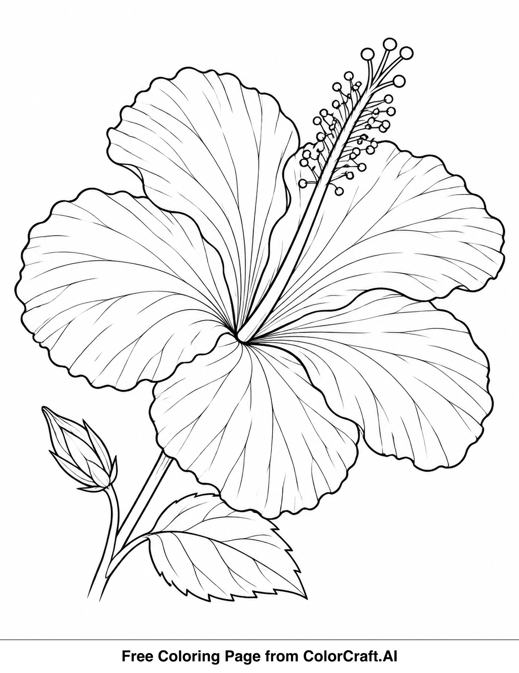 Welcome to ColorCraft! Get ready to print and color this stunning hibiscus flower. It's the perfect way to relax and unleash your creativity.
