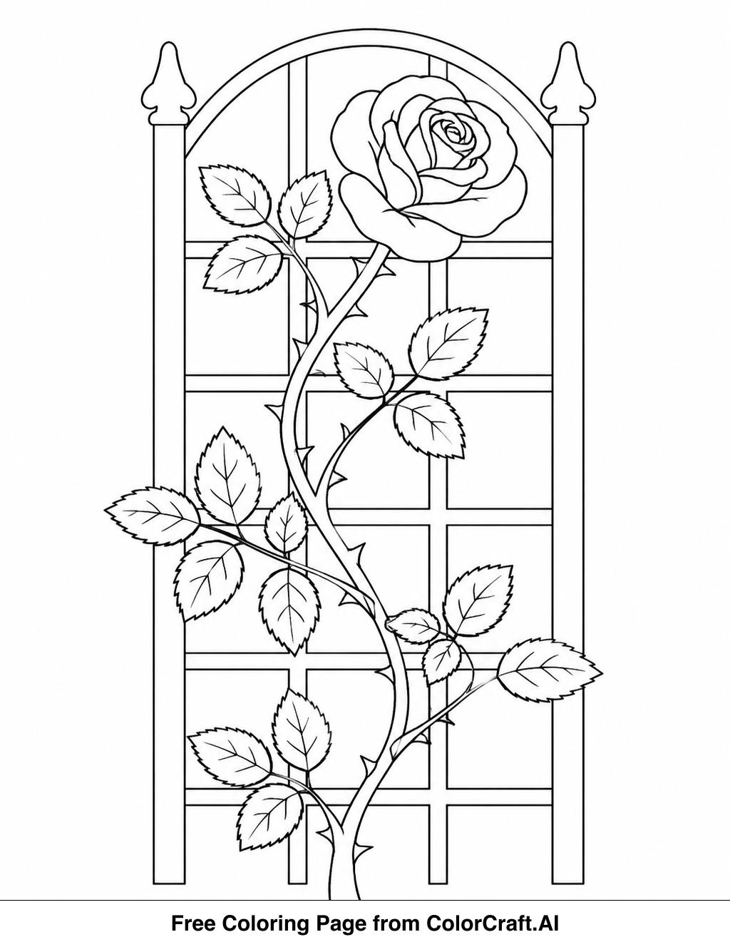 Welcome to a delightful coloring adventure! Print this beautiful rose trellis design and let your creativity bloom. Relax and enjoy the process of bringing this garden scene to life.
