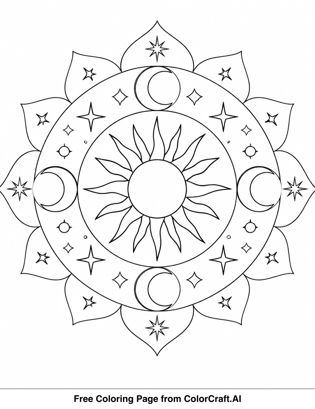 Welcome to ColorCraft! Get ready to print and color this beautiful celestial mandala. It's the perfect way to relax and de-stress.
