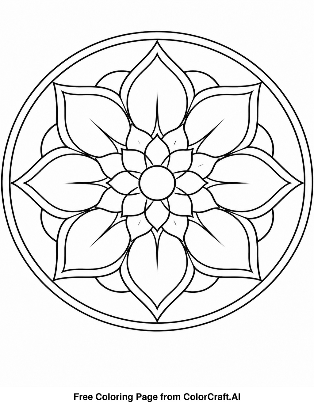 Welcome to ColorCraft! Get ready to print and color this beautiful lotus mandala. It's the perfect way to relax and express your creativity.