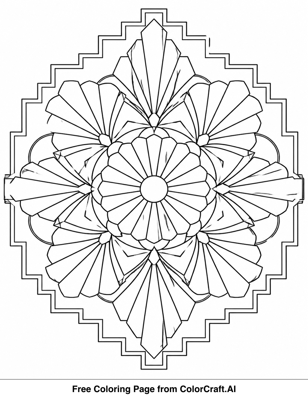 Welcome to ColorCraft! Get ready to print and color this stunning Art Deco mandala. It's the perfect design to help you relax and unwind.