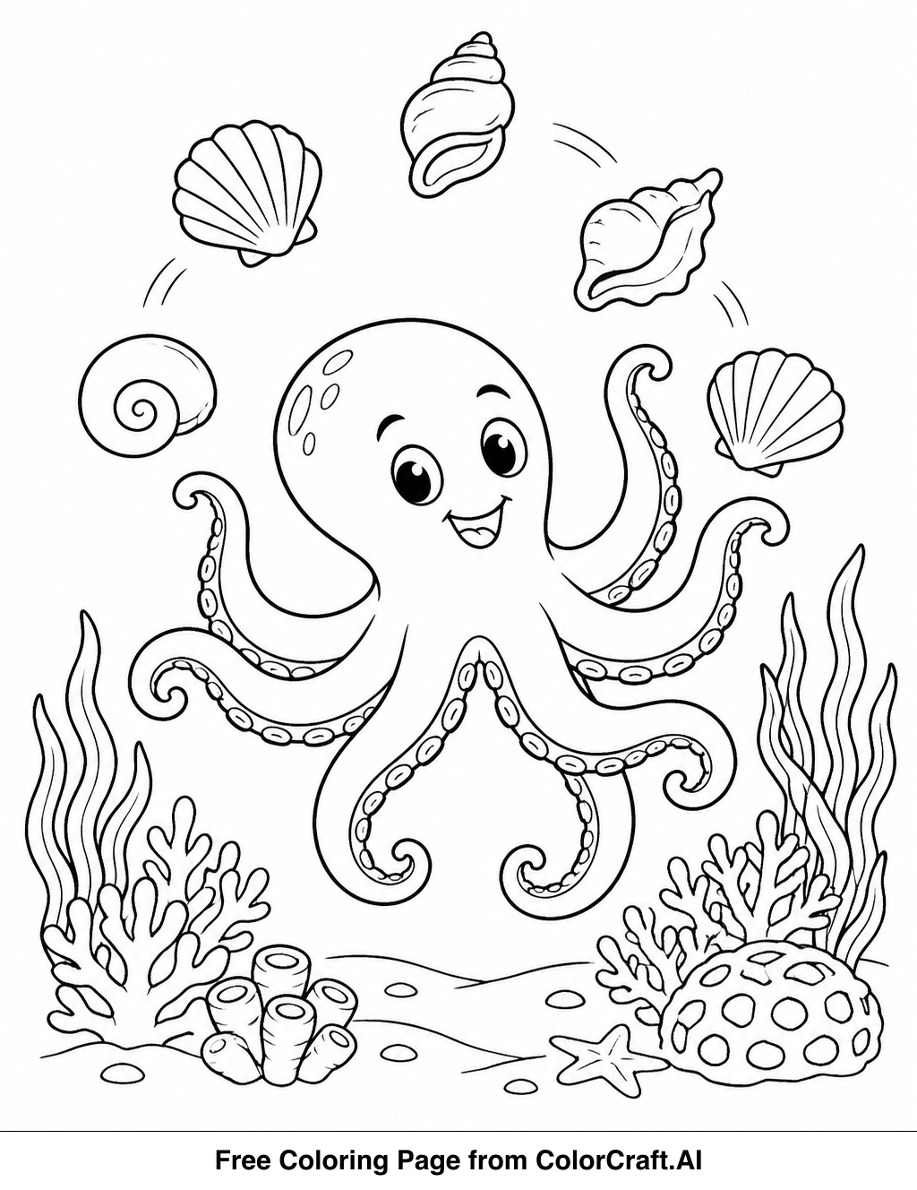 Welcome to our delightful octopus coloring page! Print this fun scene and let your creativity flow as you color and relax.