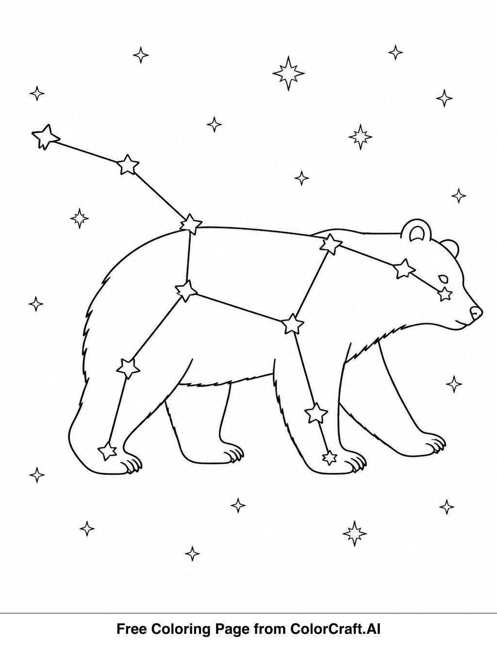 Welcome to our printable coloring page featuring the Great Bear constellation! Grab your favorite drawing tools, print this page for free, and relax as you bring this celestial map to life.