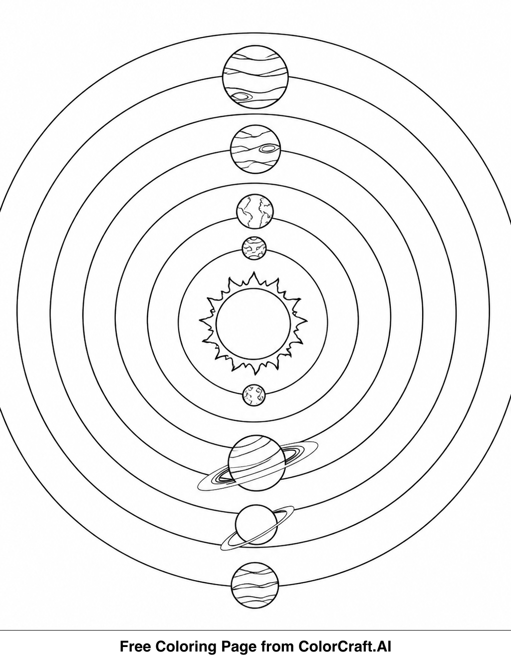 Welcome to ColorCraft! Get ready to print and color your very own solar system. This page is perfect for a relaxing creative session.